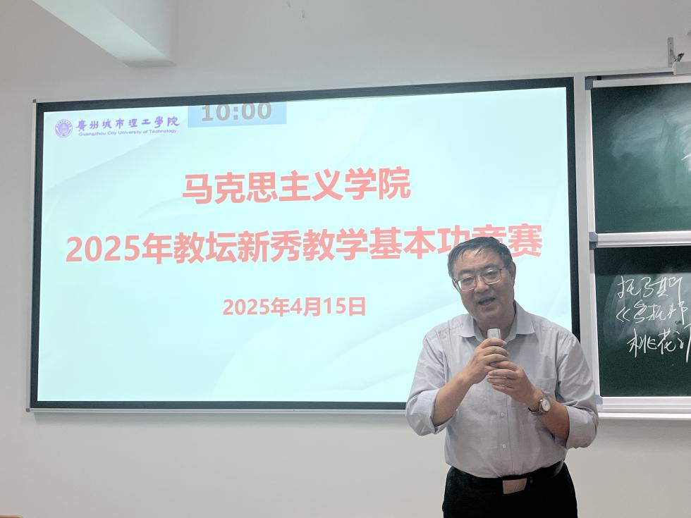 本网讯(记者 刘梅)为提升新教师课堂教学能力水平,促进新教师专业发展,为学院高质量教育教学注入新动力,马克思主义学院于4月15日下午在A12-510举办了2025年教坛新秀教学基本功竞赛。本次比赛由马克思主义学院院长吕志主持,广东第二师范学院马克思主义学院院长陈华教授、广东培正学院马克思主义学院院长易钢教授、广东药科大学马克思主义学院副院长张居永教授、广州工商学院马克思主义学院院长助理谭丽婷副教授,我校马克思主义学院顾问莫岳云教授及孟凤英、李益杰、赵军祥、詹仲亚等教授担任评委。马克思主义学院全体教师现场观摩比赛。