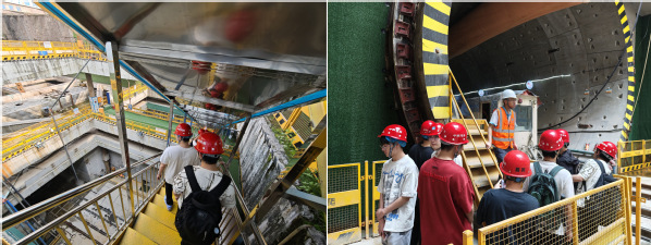 随后,学生们进入隧道智能化施工区域进行实地学习和参观。在隧道内,李子硕总工结合项目建设实践案例,详细讲解了隧道建设的工序、施工组织及质量控制措施。他特别指出,智能化施工技术在提高效率的同时,也对施工精度和安全性提出了更高要求。学生们认真聆听,并就盾构机在隧道施工中可能遇到的技术难点与李工展开热烈讨论。