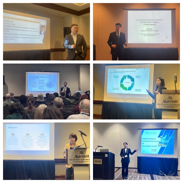 本网讯(记者 彭鑫怡 陈丽君)4月3日至7日,国际商科教育认证委员会(下称“IACBE”)2025年全球年会在美国印第安纳波利斯市举行,会议以“商科教学的新愿景(Business Education in a Changing Landscape)”为主题,吸引了多个国家与地区的高校和商科教育机构代表参与,共同探讨在快速变化的全球商业环境下商科教育的发展方向和创新路径。由国际商学院杨明晖教授担任团长,我校派出六人学术代表团应邀参会并作平行会场主题发言。