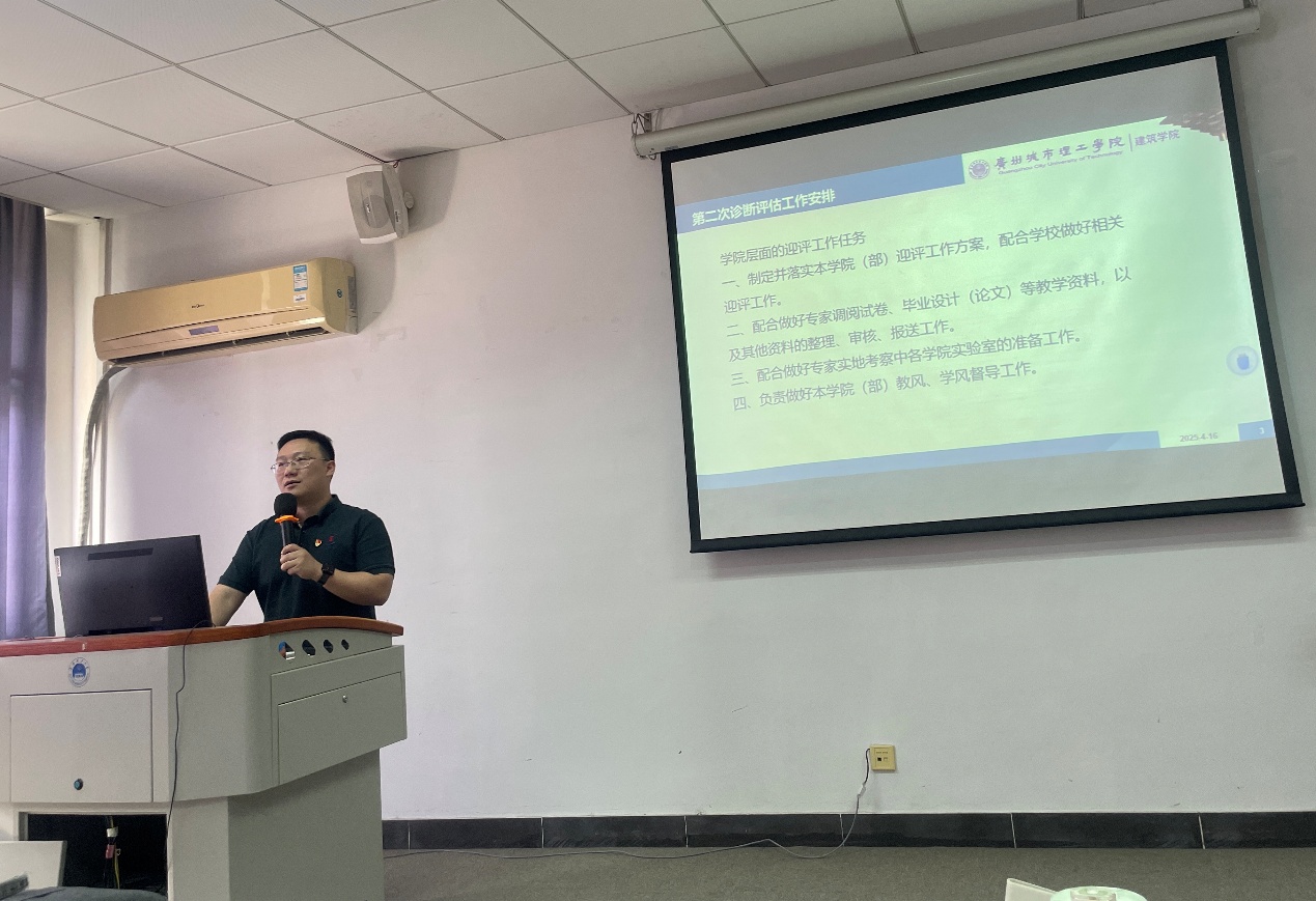 吴桂宁首先围绕学院总体情况、专业、课程等五项评估结果进行了分析,对开学以来教学运行管理、教学设施提升、产业学院建设、课程质量工程等开展情况进行了通报。吴桂宁对学院教学资料检查进行了全面复盘,明确指出存在的主要问题,并对整改工作进行了部署。吴桂宁强调,全体教师要严格遵守教学规范,按时保质完成教学任务,严谨对待教学各个环节,以规范的教学行为保障教学秩序稳定,助力提升教学质量,为合格评估奠定坚实基础。
