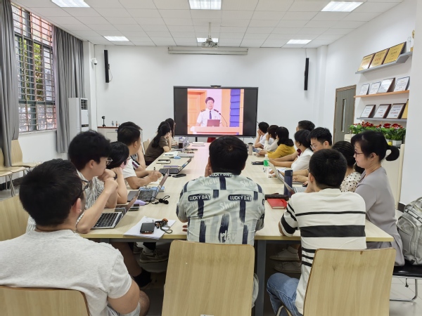 全体教师观看《大学物理》示范课视频(赵小芹 摄)