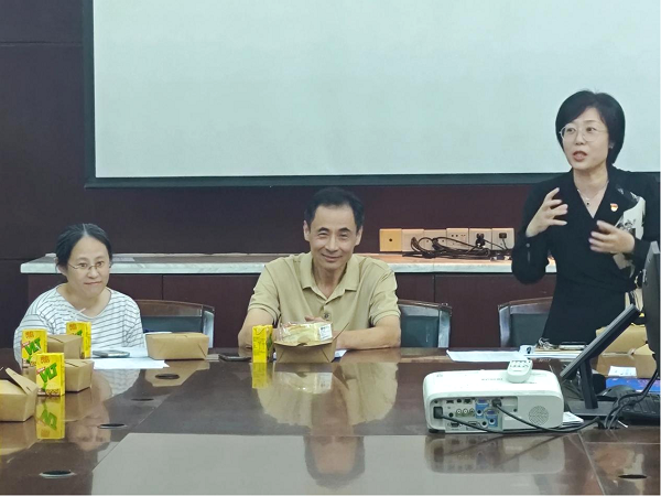 学院党总支书记张彩霞(右)讲话(李浩亮 摄)