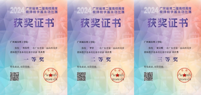 本网讯(记者 高睿一)2月21日,我校获悉,由广东省教育厅主办、广东技术师范大学承办、广东省学生体育艺术联合会协办的2024年广东省第二届高校美育教师教学基本功比赛公布获奖结果。我校3位参赛教师全部获奖,其中建筑学院程东玲荣获美术类一等奖,珠宝学院罗甘获设计类二等奖,机械工程学院/机器人工程学院梁文峻获设计类三等奖。