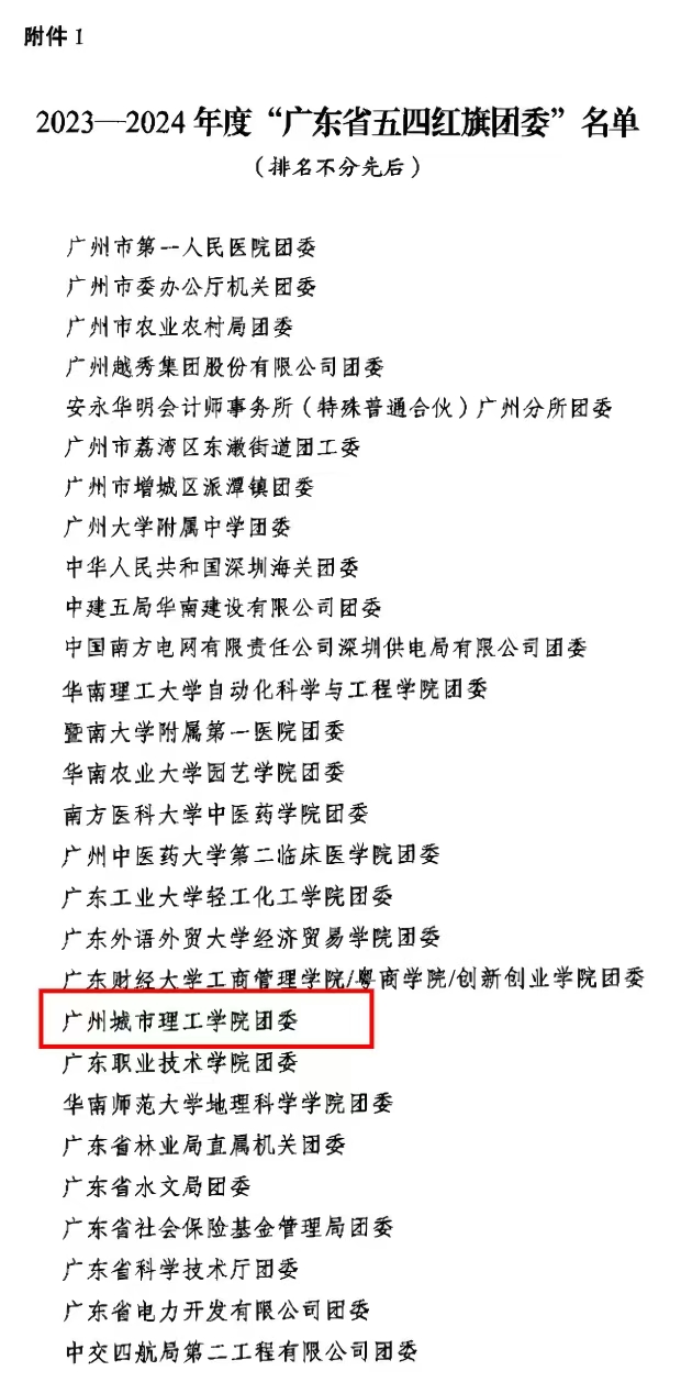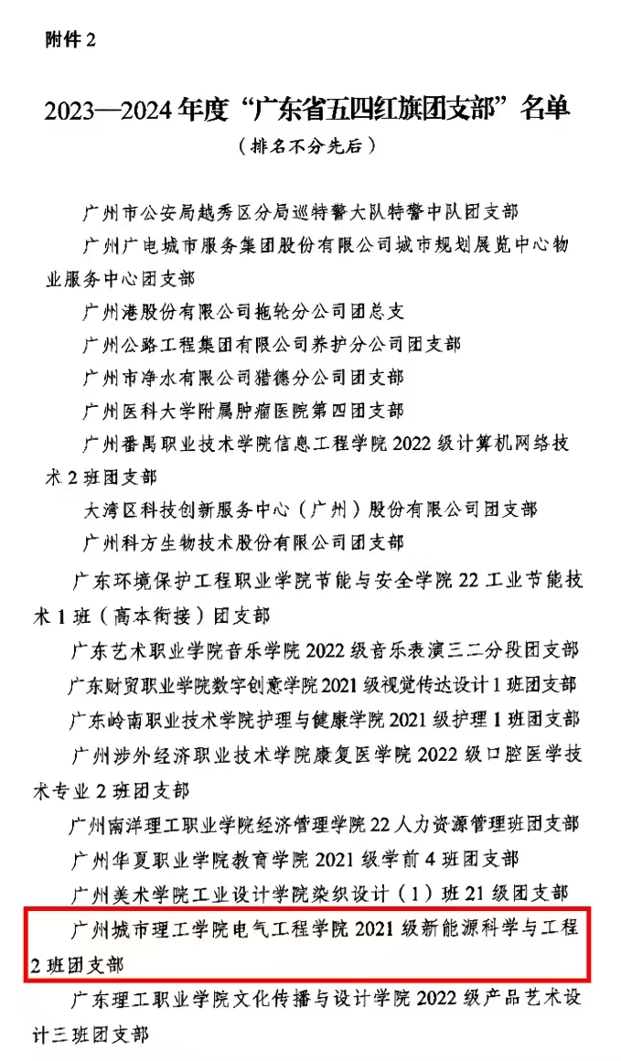 本网讯(记者 周梦思)2月21日,共青团广东省委员会发布《关于表彰2023-2024年度广东省五四红旗团委、五四红旗团支部、优秀共青团员和优秀共青团干部的决定》,我校团委获评“广东省五四红旗团委”荣誉称号、电气工程学院2021级新能源科学与工程2班团支部获评“广东省五四红旗团支部”荣誉称号。