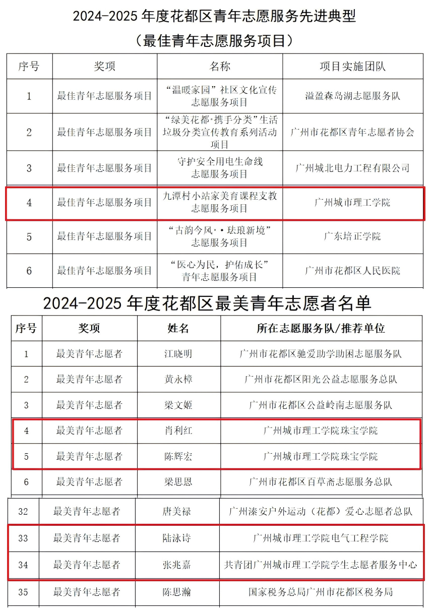 本网讯(记者 冯田丽)为传承雷锋精神,引导全区广大青年培育和践行社会主义核心价值观,持续推动花都区青年志愿服务事业向好发展,区委社会工作部、团区委联合开展了2024-2025年度花都区青年志愿服务先进典型评选活动。2月27日,评选公示结束,我校外国语学院的《九潭村小站家美育课程支教》志愿服务项目和4名优秀志愿者入选花都区志愿服务先进典型。