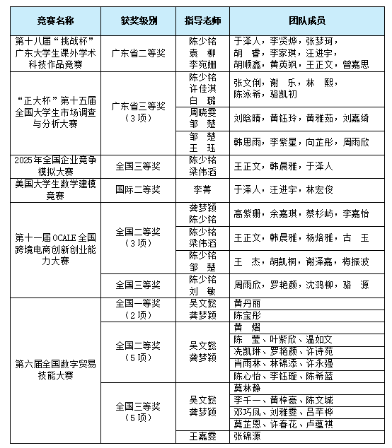 表1:国际商学院2024-2025学年第二学期学科竞赛获奖情况