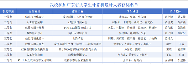 本网讯(记者 陈雪松)7月3日,2025年广东省大学生计算机设计大赛决赛结果公示结束(产教融合赛道,第2批),我校在本届大赛的参赛作品获奖结果全部揭晓。来自计算机工程学院/大数据学院、机械工程学院/机器人工程学院、电子信息工程学院/通信工程学院的作品表现优异,在“信息可视化设计”“软件应用与开发”“人工智能应用”赛道及“工业互联网技术应用”“边缘智能挑战赛”等企业命题赛项中,共斩获一等奖1项,二等奖2项,三等奖6项。同时,我校两项作品“汝瓷制作工艺可视化设计”“古韵千秋”上推至全国总决赛。