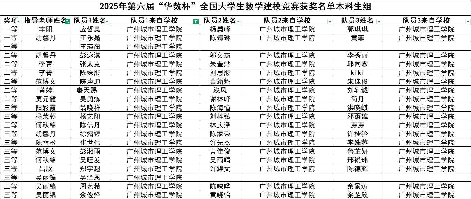 本网讯(记者 丰阳)8月25日,2025年第六届“华数杯”全国大学生数学建模竞赛获奖名单公示结束。我校代表队在本次竞赛中发挥出色,荣获全国一等奖3项,全国二等奖7项,全国三等奖20项,展现了我校学子扎实的数理基础与卓越的创新应用能力。