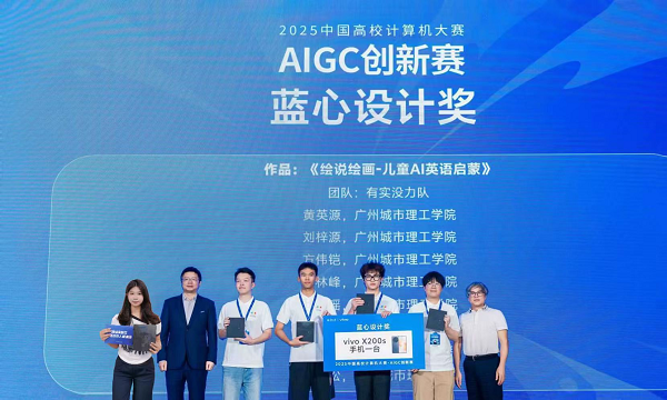 本网讯(记者 黎雪)8月25日,“2025中国高校计算机大赛-AIGC创新赛”应用赛道决赛答辩在东莞圆满落幕。决赛采用线下答辩形式,由来自全国八大赛区的高校教师与vivo公司专家组成的10人评审团共同评审。35支决赛队伍最终决出一等奖5队、二等奖10队、三等奖20队,并评选出蓝心设计奖1队及蓝心创新奖1队。计算机工程学院/大数据学院派出的学生队伍在本次竞赛中表现优异,与北京大学、北京邮电大学、南开大学、同济大学等高校同台竞技,最终荣获全国一等奖及蓝心设计奖,充分展现了我校学子扎实的AIGC技术基础与卓越的创新应用能力。