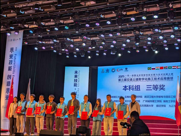 本网讯(记者 李巍)9月25日至9月27日,2025“一带一路”暨金砖国家技能发展与技术创新大赛第三届交通土建数字化施工技术应用竞赛全国总决赛在哈尔滨铁道职业技术学院举行。我校土木工程学院学子陆益洲、李泳龙组成的代表队表现出色,经过激烈角逐,最终荣获全国三等奖(本科组),为学校赢得荣誉。