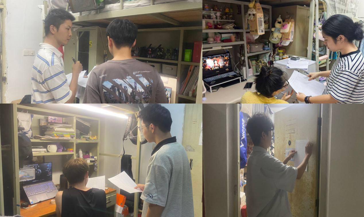 学生宿舍是学生日常生活与集体生活的重要载体。学院组织辅导员对全院学生宿舍开展全面性、精细化检查,重点检查环境卫生、安全规范,关注学生作息规律、宿舍集体氛围等情况。检查期间,辅导员还与学生进行深入的面对面交流,细致了解其学习进度、生活需求及思想动态,鼓励学生以宿舍为单位组建学习互助小组、开展文化建设活动,共同营造温馨和谐、积极向上的宿舍文化氛围。