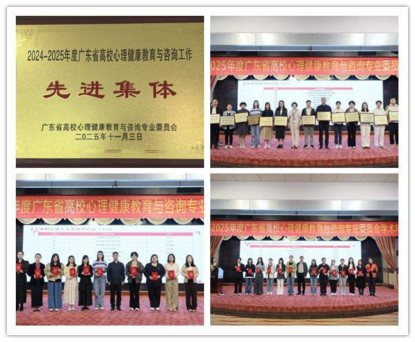 在表彰环节中,我校荣获“广东省高校心理健康教育与咨询工作先进集体”称号,这是我校已连续6次获此荣誉。同时,我校心理健康教育与咨询中心主任鲁丹凤副教授在此次换届工作中当选为专业委员会常务委员,受聘为“心理健康教育教学及心理咨询督导师”,更好地为我校乃至广东省的心理工作发展助力。